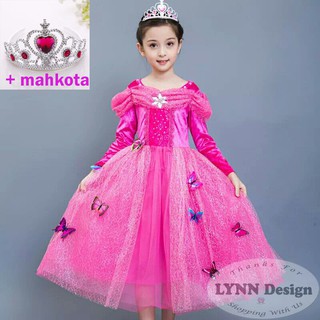 Bap 038 Disney Princess Aurora Dress Set With Crown Baju Pesta Anak Princess Gaun Formal Pink Sleeping Beauty
