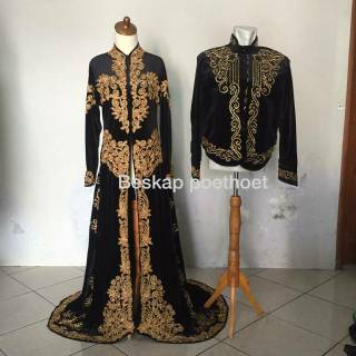 Set Baju Pengantin Adat Jawa Bludru Hitam Emas Muslim Muslimah Modern Simple Elegan Gratis Selop